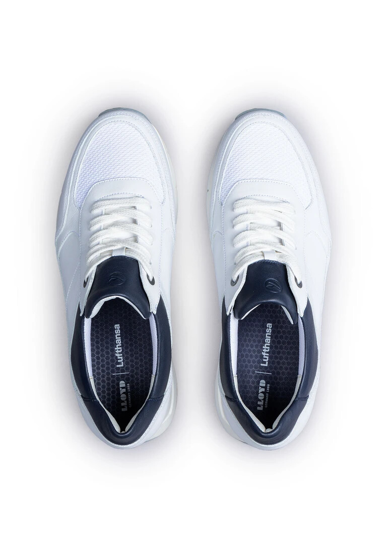 La LLOYD ALEXIS coniuga design elegante e comfort elevato in una sneaker bassa. Realizzata in pregiata pelle liscia e tessuto moderno, è ideale sia per il lavoro che per il tempo libero. La suola in gomma traspirante garantisce un supporto ottimale, mentre il plantare Variobed rimovibile, estremamente leggero e confortevole, consente una regolazione personalizzata. Con il suo taglio arrotondato, la scarpa offre stile e comfort per l’uomo più esigente. La fodera accuratamente bilanciata, composta al 60% da tessuto e al 40% da pelle, completa armoniosamente il look generale. Nel classico bianco, la ALEXIS si distingue senza sforzo in qualsiasi ambiente. Pone accenti di stile e garantisce allo stesso tempo una calzata confortevole.