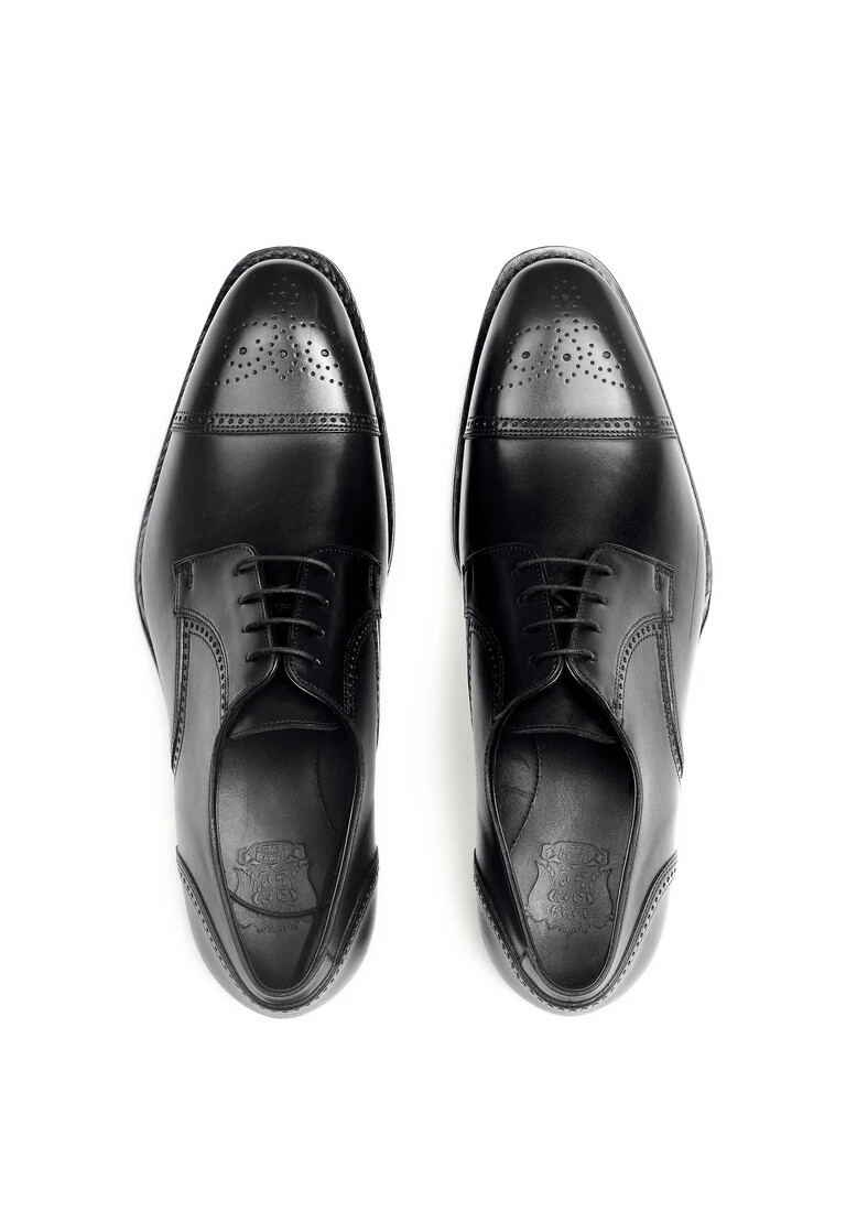 Vivi l’eleganza con il modello LLOYD APEX 130GY, una scarpa che unisce tradizione e modernità. La tomaia in pregiata pelle liscia nera aggiunge un tocco classico, mentre la suola in cuoio offre una finitura sofisticata. Lo stile brogue con fori di grande impatto è caratteristico e conferisce alla scarpa stringata derby un tocco raffinato. L’interno è interamente realizzato in pelle, garantendo una sensazione esclusiva e una lunga durata. Con la sua punta squadrata e affusolata, l’APEX 130GY emana un’eleganza raffinata. Ideale per occasioni di lavoro o eventi festivi in cui il classico incontra le esigenze moderne.