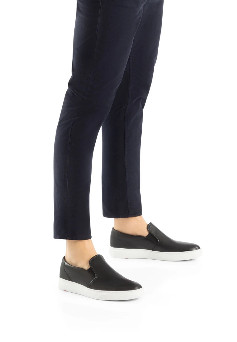 Le scarpe da viaggio della collezione LLOYD X Lufthansa sono leggere come una piuma, comode da indossare e veloci da indossare e togliere. Pratiche per i controlli di sicurezza: non contengono parti metalliche. Fanno un figurone, ispirandosi agli aerei della flotta Lufthansa. Non c’è da stupirsi che tutti le indossino. Fai colpo con le slip-on LLOYD in morbida pelle nera e con una suola particolarmente leggera. Le scarpe convincono per la loro maneggevolezza, che si indossa semplicemente. La suola è in gomma antiscivolo. Questa ammortizza l’impatto durante la camminata, mentre la soletta interna in materiale sintetico garantisce leggerezza. Le scarpe sono comode e quindi ideali per la vita di tutti i giorni grazie al tacco basso. La tomaia in morbida pelle liscia e la fascia elastica garantiscono un aspetto classico ed elegante e una facile calzata e toglietura. Queste scarpe foderate in pelle e tessuto sono comode e traspiranti. Il modello è dotato di plantare Variofootbed, perfetto per i plantari grazie alla soletta interna rimovibile.