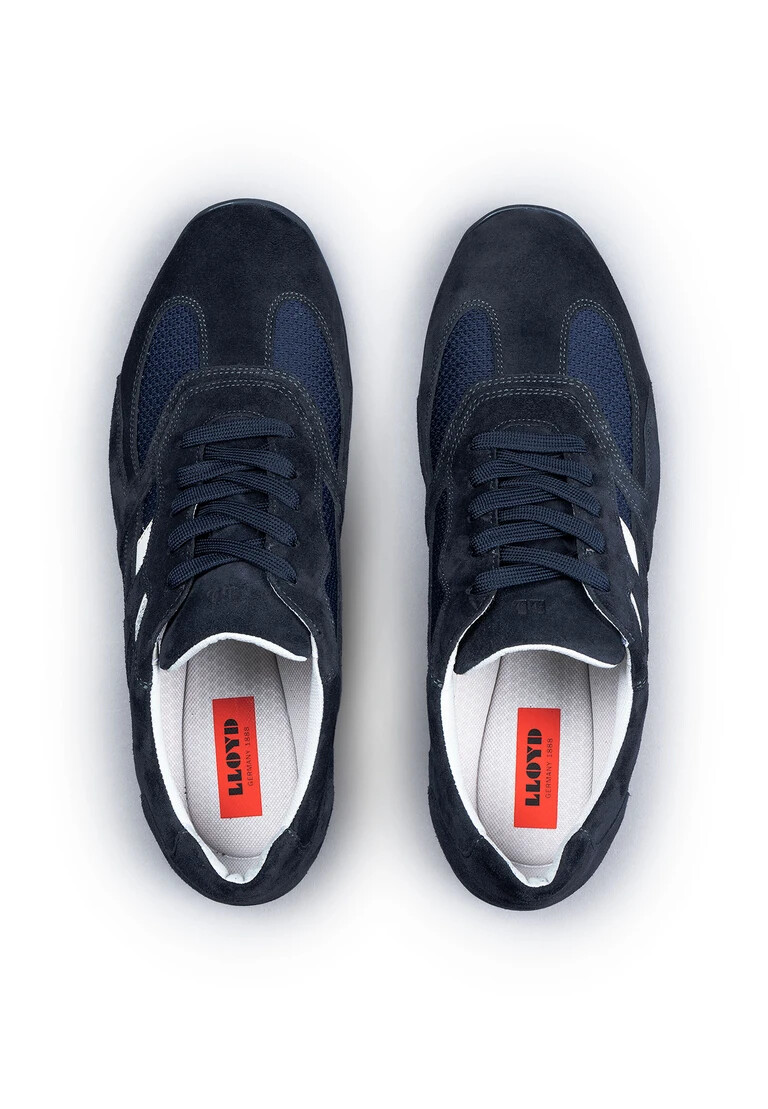 Le sneaker BALDWIN di LLOYD incarnano un’eleganza senza tempo e una disinvoltura raffinata. Realizzate in pregiata pelle scamosciata, tessuto e pelle liscia, definiscono il carattere audace di un look casual moderno. La comoda suola in gomma garantisce stabilità. Grazie alla classica allacciatura, possono essere abbinate in diversi modi e sono comode da indossare. La fodera interna è composta al 90% da tessuto e al 10% da microfibra onSteam, che garantisce una temperatura piacevole per il piede. La soletta interna rimovibile, dotata di Variofootbed, consente una regolazione individuale per un comfort ottimale. In un’accattivante tonalità di blu, questa scarpa è ideale per gli uomini attenti allo stile che apprezzano la qualità e il design.