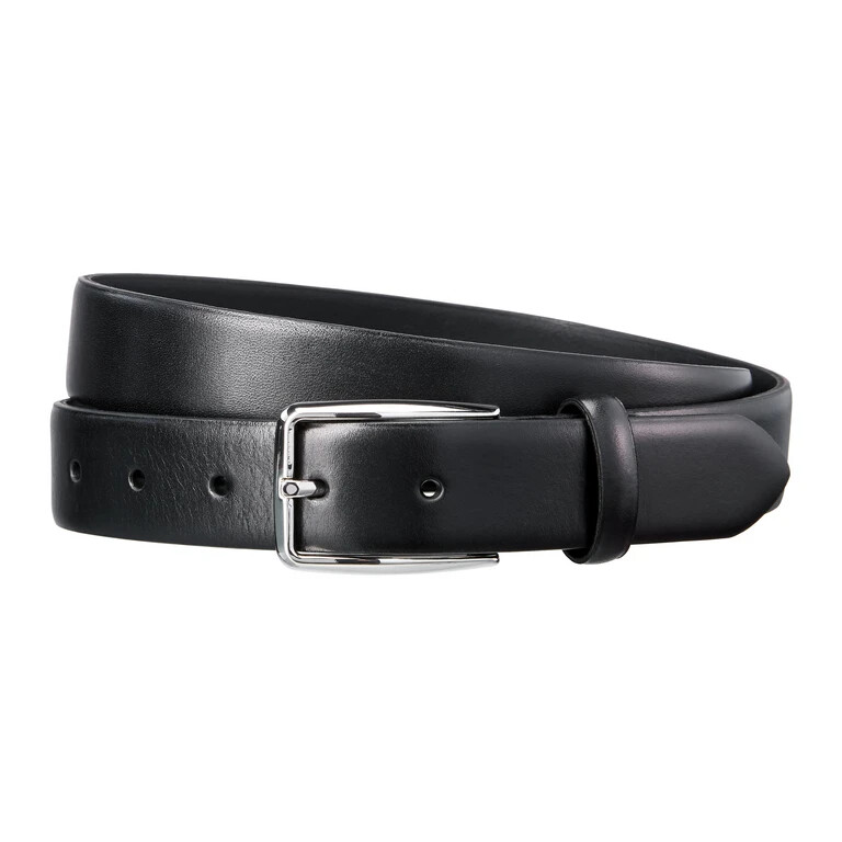 Pura eleganza in un design semplice: questa cintura di alta qualità in pelle bovina nera è impreziosita da una fibbia argentata e completa qualsiasi look.