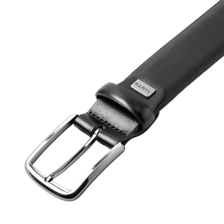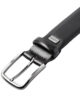 Cintura classica in pelle nera. Particolarmente suggestiva è la fibbia scura con effetto bicolore.