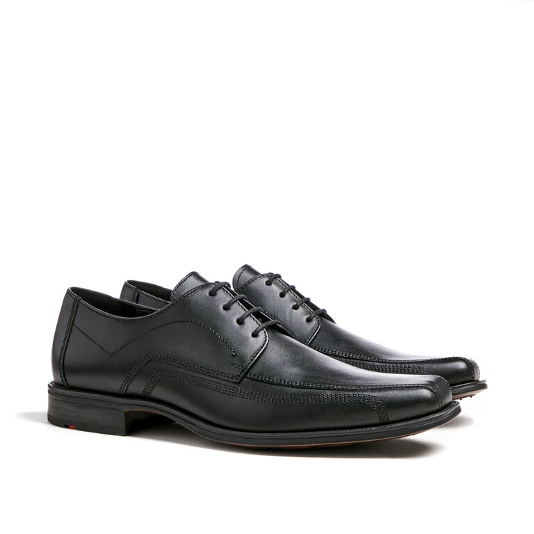 Derby classica, di grande tendenza grazie alla punta a scalpello. La tomaia in morbida pelle con cuciture elaborate e gli elementi realizzati a mano sulla tomaia sottolineano il design raffinato di questa scarpa bassa. La discreta suola in gomma da città rimane visivamente in secondo piano e offre un comfort eccezionale durante la camminata.