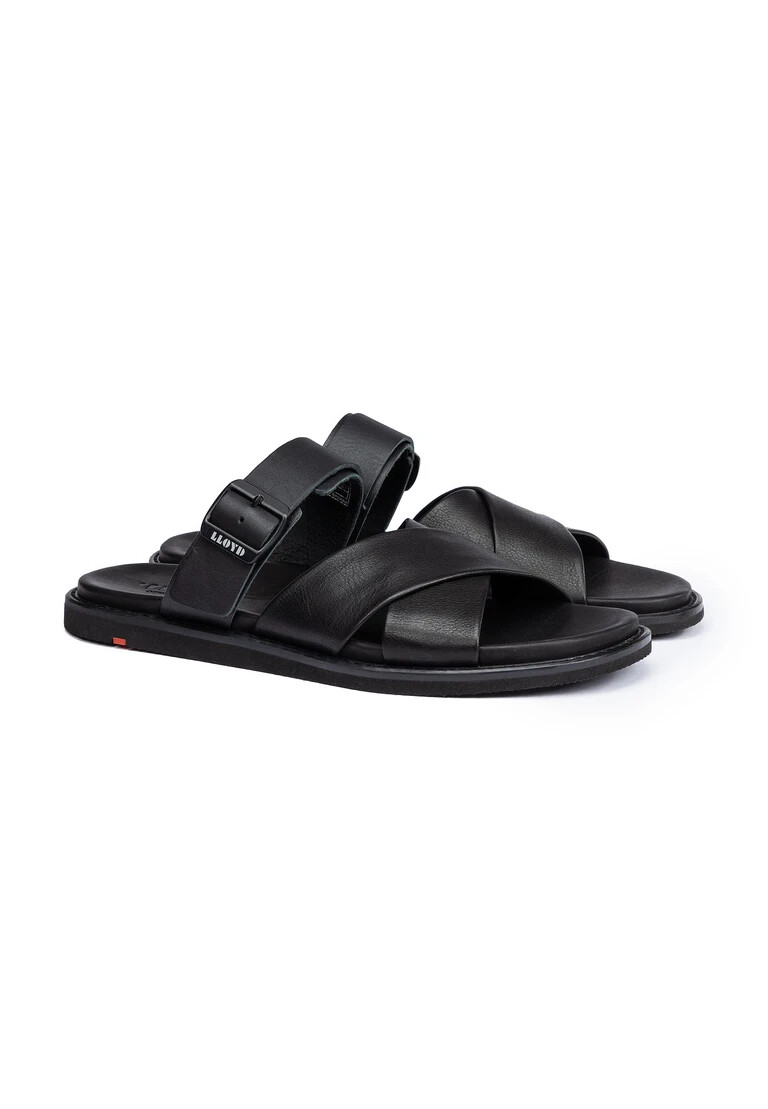 LLOYD presenta i sandali “EMINET”: realizzati in morbida pelle nera, questi sandali vantano un design sportivo. Un look leggero e fresco per le giornate di sole è garantito da queste scarpe. La suola in gomma resistente all’usura ammortizza l’impatto durante la camminata e la pelle della soletta interna offre un’ottima termoregolazione. La tomaia in morbida pelle liscia, la fascia elastica e la chiusura con fibbia assicurano una calzata facile e un look classico ed elegante. Grazie alla fodera in pelle, queste scarpe sono traspiranti e comode.