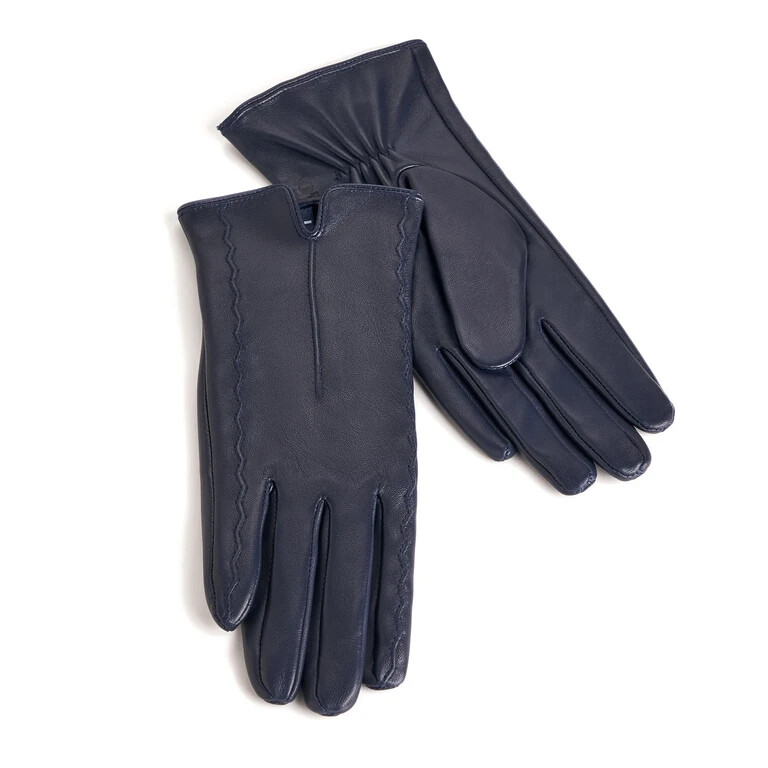 Lloyd presenta eleganti guanti blu scuro in morbida pelle. All’esterno, il guanto presenta cuciture decorative che aggiungono un tocco di stile e garantiscono un aspetto complessivo di alta qualità. Il guanto è un accessorio moderno e accattivante, il compagno ideale per il freddo inverno.