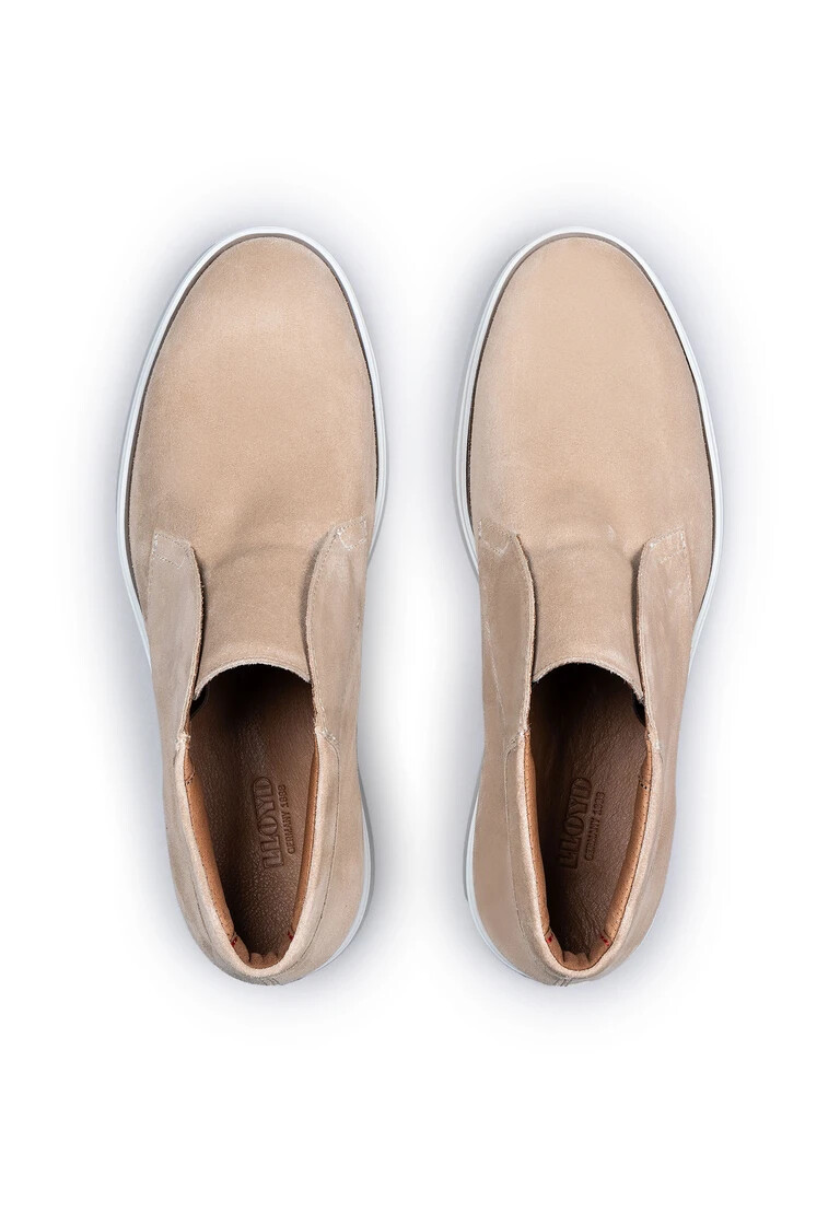 Lo stivaletto slip-on HUMPHREY da uomo unisce un’eleganza raffinata a un design moderno. Realizzato in pregiata pelle scamosciata, il modello è disponibile in un’accattivante tonalità beige, che si presta a molteplici abbinamenti. La punta arrotondata crea una silhouette contemporanea, mentre la fodera in pelle al 100% offre il massimo comfort. La suola in gomma offre una base ideale per diverse occasioni, sia per il lavoro che per il tempo libero. Un pratico elastico slip-on permette di infilare e sfilare la scarpa senza sforzo. Un classico che aggiunge un tocco sofisticato al tuo outfit. Scopri il perfetto mix di funzionalità e look elegante con lo stivaletto slip-on HUMPHREY.