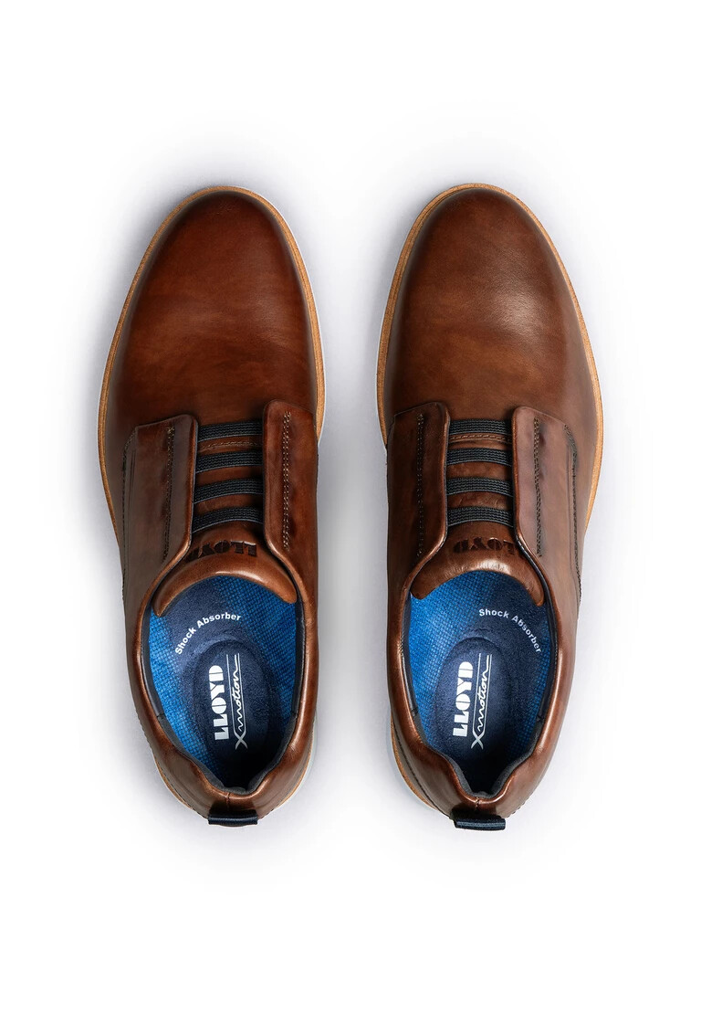 Scopri MARCIO by LLOYD, un’elegante scarpa derby che si adatta con disinvoltura sia al lavoro che al tempo libero. Realizzata in pregiata pelle liscia, è disponibile in una tonalità marrone mordente che si presta a molteplici abbinamenti. La comoda chiusura slip-on con cinturino elastico la rende facile da indossare, mentre la punta arrotondata le conferisce un look classico. La fodera in 60% pelle e 40% tessuto garantisce una calzata confortevole. La soletta interna rimovibile in microfibra offre possibilità di regolazione personalizzate. Dotata della tecnologia Extralight, la scarpa è ideale per l’uomo moderno. Scopri la perfetta simbiosi tra eleganza e funzionalità: con MARCIO stabilisci nuovi standard nel design delle calzature.