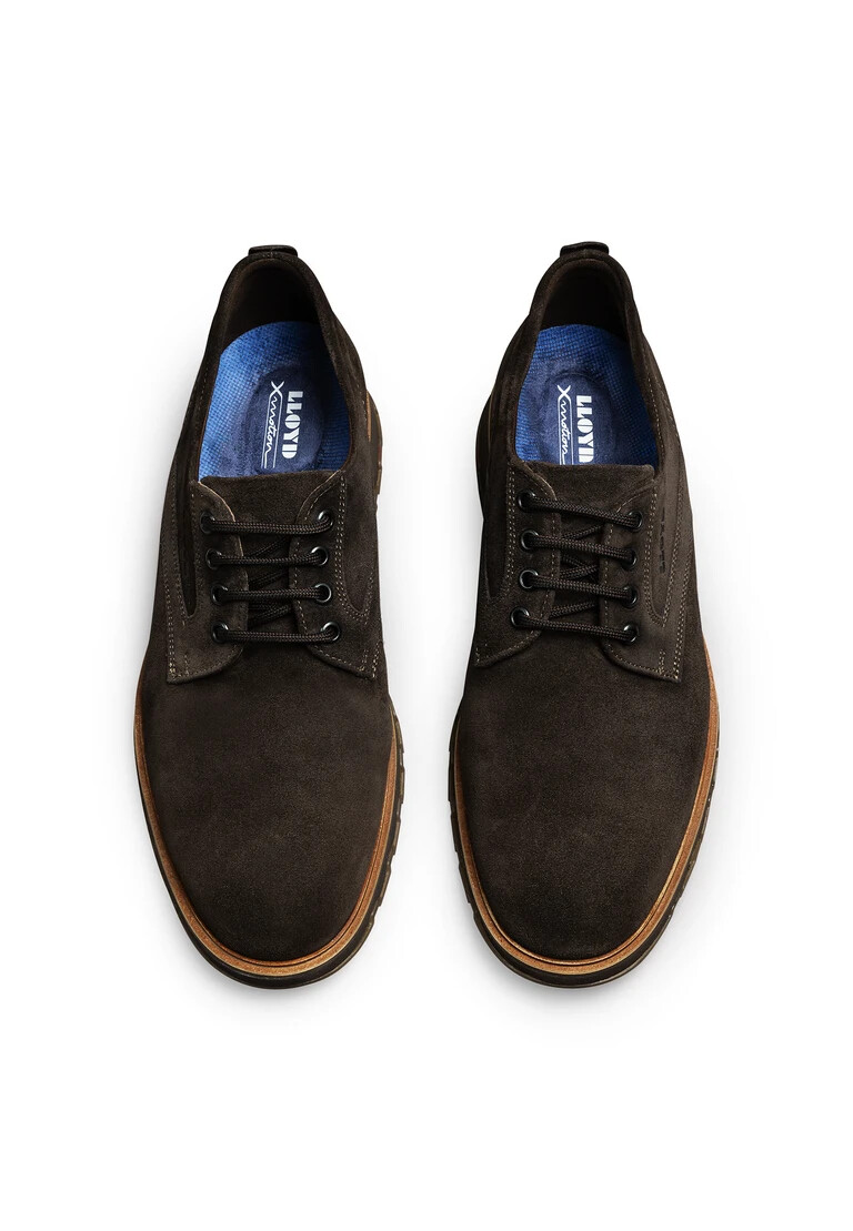 Fai colpo con le scarpe stringate LLOYD, realizzate in pelle ruvida marrone e con una tomaia facile da pulire. Le scarpe sono perfette per una calzata sicura grazie alla chiusura con lacci. La suola in gomma flessibile ammortizza l’impatto durante la camminata. Le scarpe offrono un appoggio sicuro e consentono un comodo utilizzo quotidiano grazie al tacco basso a blocco. La tomaia in morbida pelle ruvida e i lacci delle scarpe garantiscono un aspetto originale e di alta qualità e una presa salda e sicura. Queste scarpe stringate da uomo sono traspiranti e comode grazie alla fodera in pelle. Il modello è dotato di tecnologia X-motion, una tecnologia da running. La suola stabilizza e protegge le articolazioni.