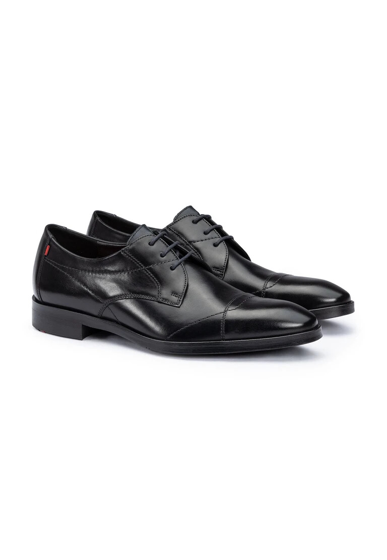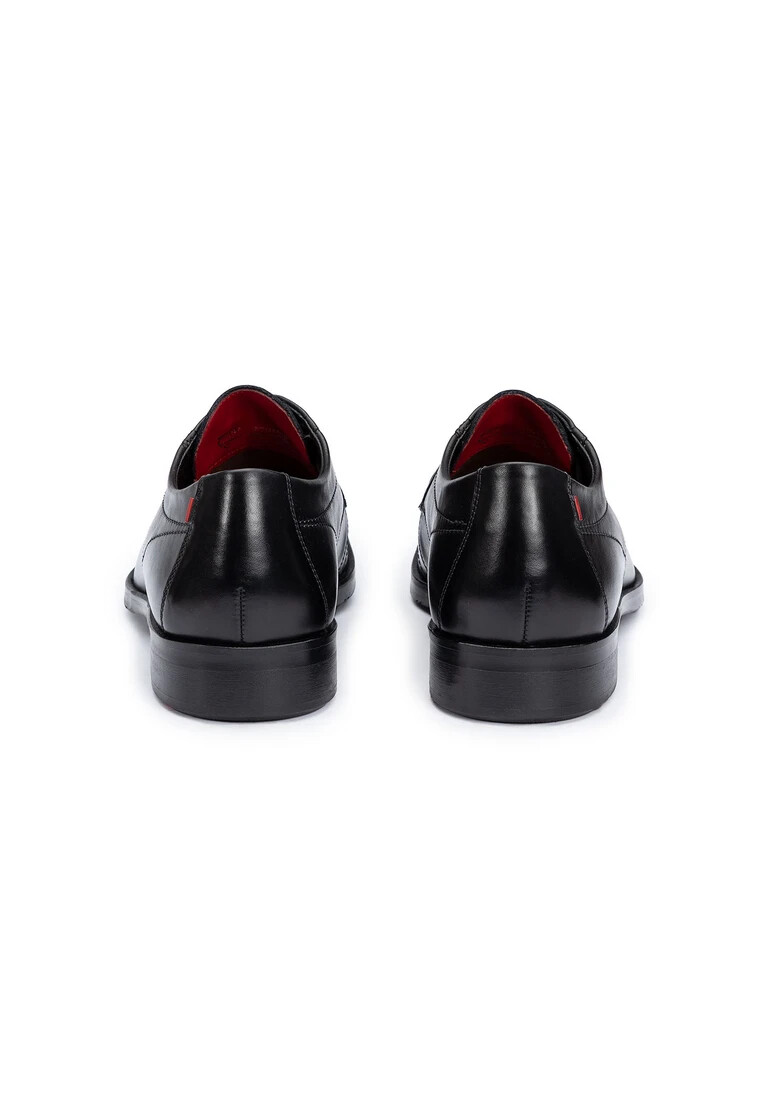 La scarpa derby LLOYD ORLO emana un elegante minimalismo ed è la scelta perfetta per occasioni di lavoro e di festa. Realizzata in pelle liscia di alta qualità, questa scarpa stringata colpisce per il suo design senza tempo e la classica punta arrotondata. La fodera in 60% pelle e 40% tessuto garantisce una calzata confortevole. La suola in gomma completa il look generale e garantisce un aspetto accattivante. Con la sua combinazione di colori nera, la ORLO si adatta facilmente a qualsiasi guardaroba formale. Goditi il perfetto mix di stile e funzionalità che soddisfa le esigenze della moda maschile moderna. Scegli LLOYD e affidati a qualità e design che ispirano.