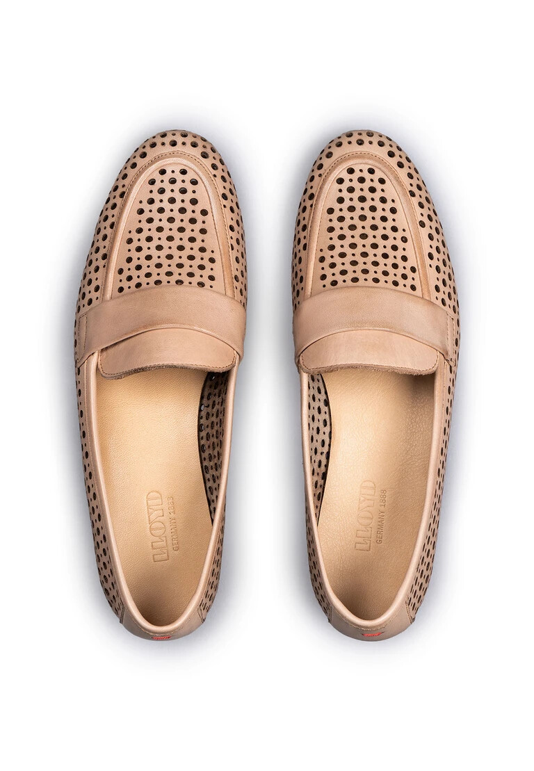 Scopri l’elegante SLIPPER di LLOYD, espressione di raffinatezza senza tempo in un caldo marrone. La tomaia in pregiata pelle liscia e pelle traforata unisce un design elegante a una lavorazione di prima classe. Con una semplice chiusura slip-on, questa scarpa garantisce un comfort impeccabile e una calzata perfetta. La fodera e la soletta in pelle al 100% aggiungono un tocco di lusso e creano una piacevole sensazione di calzata. Ideale per le occasioni festive e i momenti di relax, questa scarpa slip-on incarna l’armoniosa combinazione di classe e disinvoltura. La sua classica punta arrotondata completa elegantemente il look generale. Concedetevi questo accessorio di stile che completerà qualsiasi look.