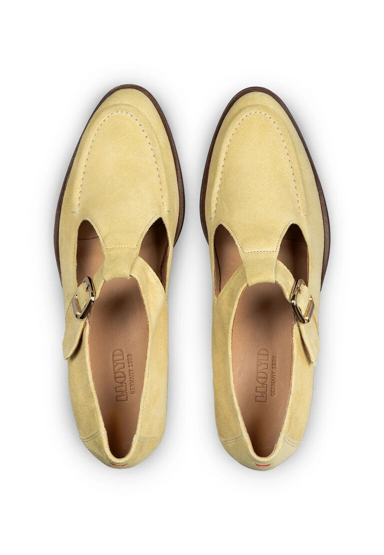 La LLOYD SLIPPER unisce un design elegante a una lavorazione di alta qualità ed è la scelta perfetta per le occasioni festive. La tomaia in pregiata pelle scamosciata in un vivace giallo conferisce alla scarpa un tocco contemporaneo, mentre la punta arrotondata e l’elegante fibbia ne sottolineano il look raffinato. La fodera è realizzata al 100% in pelle e garantisce una calzata confortevole. Con la suola in gomma e la struttura robusta, la SLIPPER è allo stesso tempo elegante e funzionale. Come classica scarpa monk, questo modello è pensato per la donna attenta alla moda che apprezza la qualità e il design senza tempo. Goditi la combinazione di lusso e versatilità che la LLOYD SLIPPER ti offre.