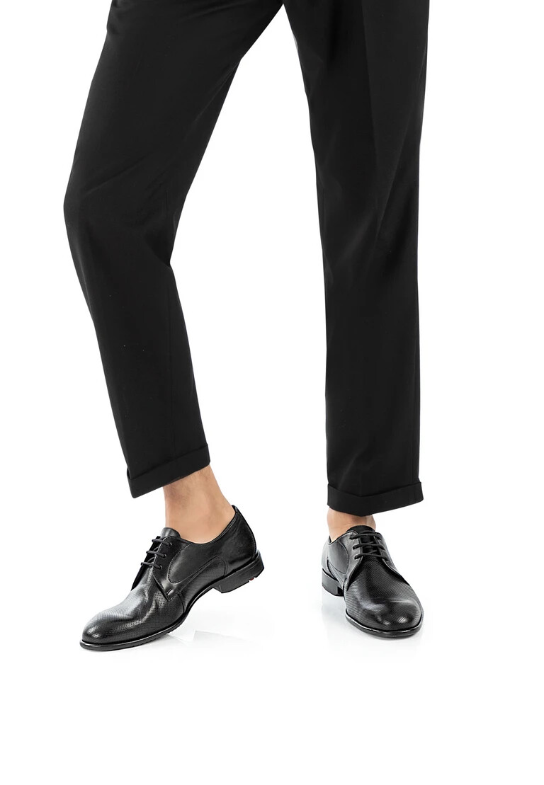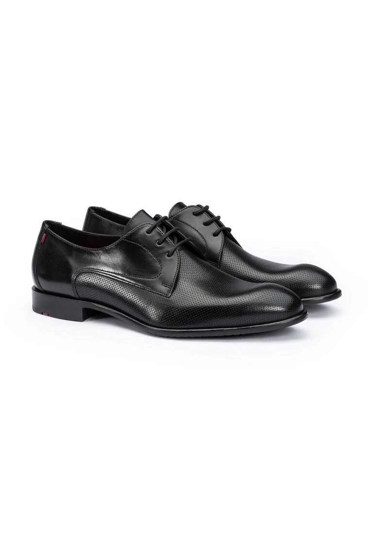 La scarpa Derby RAPPORT di LLOYD colpisce per il suo design elegante, realizzata in pregiata pelle liscia e pelle goffrata. L’allacciatura garantisce una vestibilità personalizzata e un look classico, ideale per occasioni aziendali e festive. La punta arrotondata sottolinea la silhouette elegante e trasmette un’eleganza senza tempo. Con una suola in pelle e gomma, questa scarpa unisce comfort e stile. La fodera in pelle al 100% aggiunge un tocco di eleganza e comfort. Nel classico nero, questo modello si inserisce armoniosamente in qualsiasi collezione di scarpe da uomo. La RAPPORT è la scelta perfetta per l’uomo moderno che apprezza un aspetto curato.