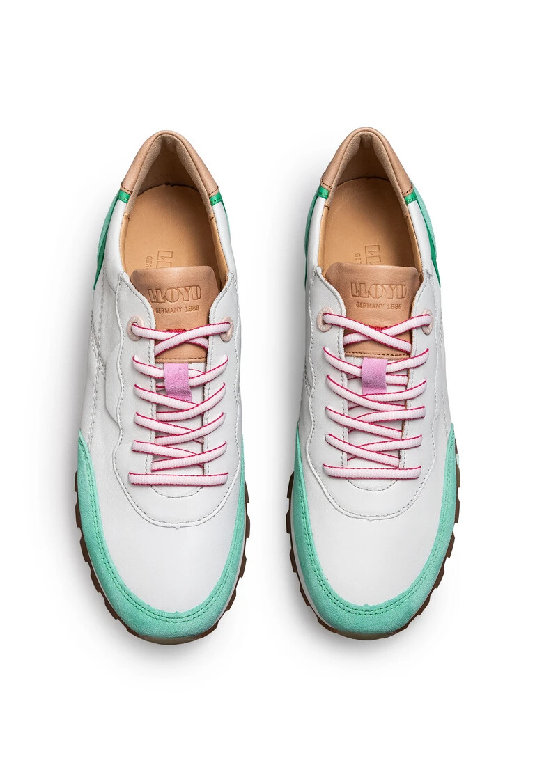 LLOYD presenta le sneaker basse: realizzate in morbida pelle bianca, le scarpe offrono un comfort piacevole. Sono ideali per un look sportivo. La suola in gomma resistente all’usura ammortizza perfettamente l’impatto durante la camminata. Inoltre, la pelle della soletta interna garantisce un’ottima termoregolazione. I lacci e l’elegante tomaia in pelle garantiscono un aspetto moderno e di alta qualità e una presa salda e sicura. Queste scarpe, foderate in pelle e tessuto, sono comode e traspiranti.