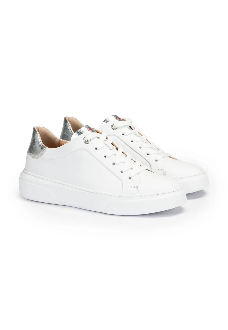 Questa sneaker LLOYD unisce armoniosamente eleganza e stile. Realizzata in pregiata pelle lucida e pelle liscia, offre un look sofisticato che stupirà sia in contesti lavorativi che nel tempo libero. L’intramontabile colore bianco garantisce versatili possibilità di abbinamento e aggiunge un tocco di freschezza a qualsiasi outfit. La fodera in pelle al 100% assicura una calzata confortevole, mentre la soletta interna rimovibile offre ulteriore flessibilità. Con allacciatura classica e punta arrotondata, queste sneaker presentano elementi di design collaudati. Ideali per la donna attenta alla moda che apprezza la qualità e lo stile. LLOYD: dove la funzionalità incontra l’eleganza senza tempo.