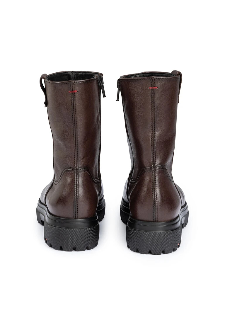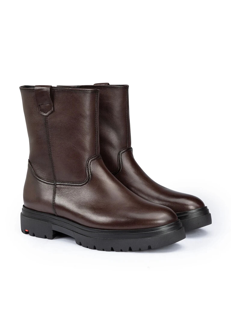 LLOYD offre uno stivale in morbida pelle marrone che colpisce per la suola resistente e ammortizzante. Gli stivali promettono un look versatile che può essere abbinato in molti modi. La suola in gomma resistente all’abrasione offre un’ammortizzazione ideale durante la camminata. La soletta interna in pelle di agnello garantisce inoltre un interno caldo. Grazie al tacco piatto, lo stivale offre una posizione sicura ed è particolarmente adatto all’uso quotidiano. Con la sua pelle morbida e liscia, lo stivale crea un look elegante ed è facile da chiudere grazie alla cerniera. Grazie alla fodera in pelle di agnello, gli stivali regolano la temperatura e mantengono i piedi caldi anche nelle giornate più fredde.