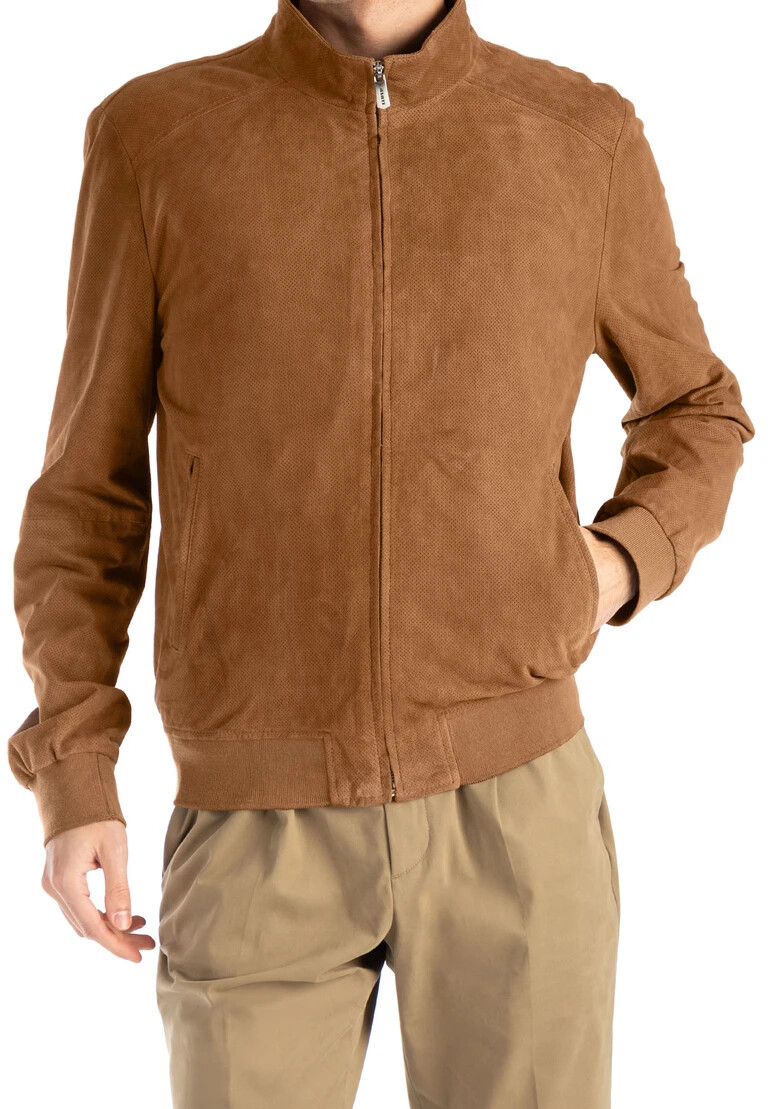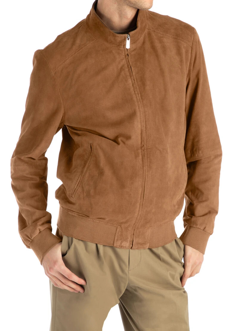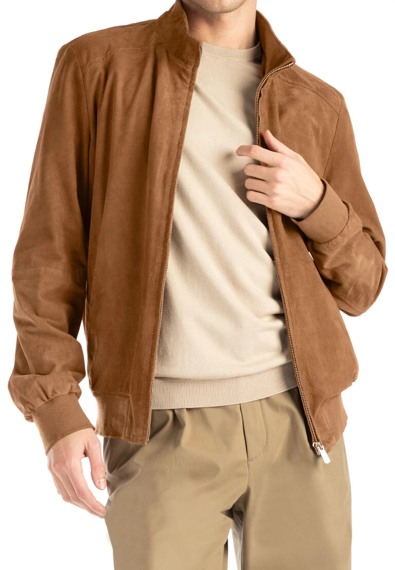 La giacca leggera in pelle “THEO” di LLOYD unisce un design elegante a un comfort di prima classe. Realizzata in pregiata pelle scamosciata di capra, particolarmente traspirante grazie alla microperforazione, questa giacca è morbida al tatto. Il materiale sfoderato è leggero come una piuma, rendendola ideale per le giornate più calde. Una robusta cerniera in metallo e un elegante colletto alla coreana completano il look elegante. Due tasche a filetto e due tasche interne, ideali per riporre piccoli oggetti in modo sicuro, offrono ulteriori pratici vantaggi. I polsini elastici e flessibili a costine su maniche e orlo garantiscono una vestibilità perfetta. Questa giacca in pelle è un esempio eccezionale dell’impegno di LLOYD per la qualità e lo stile.