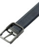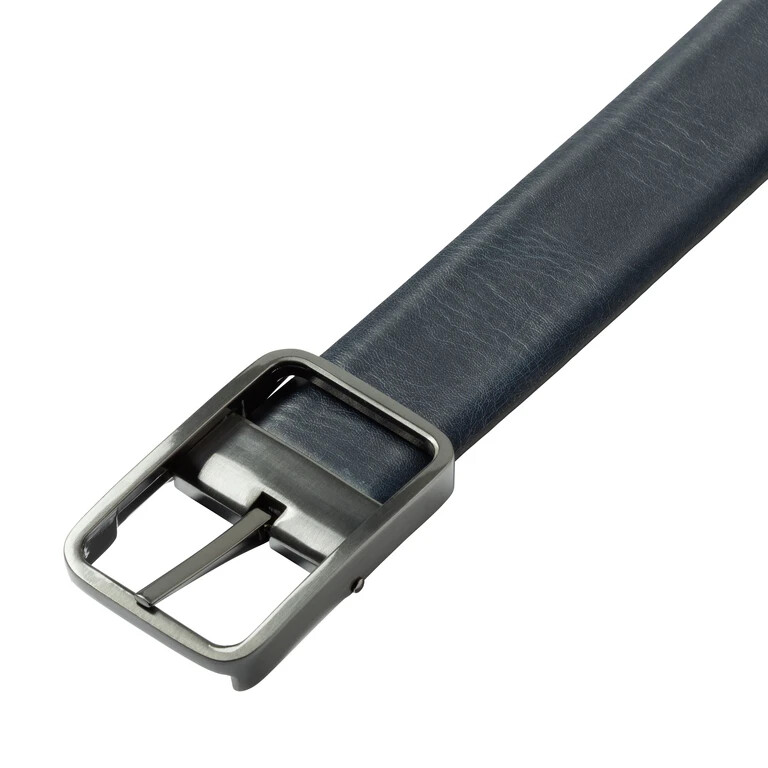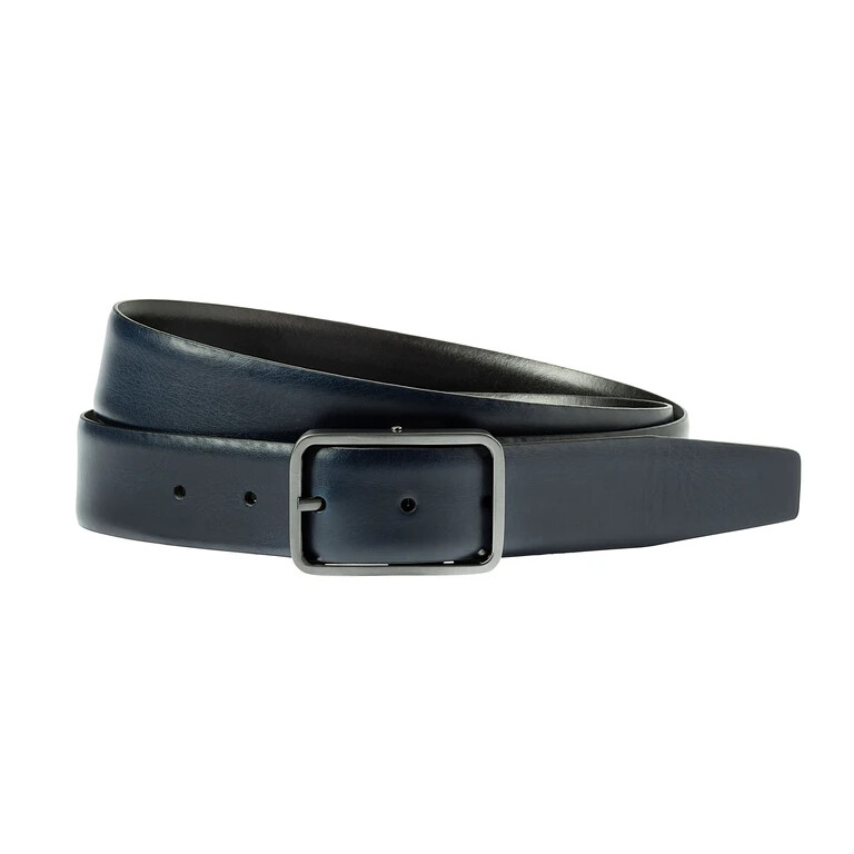 Cintura reversibile con fibbia a barra che può essere indossata da entrambi i lati. È visibile solo il lato blu o quello nero.